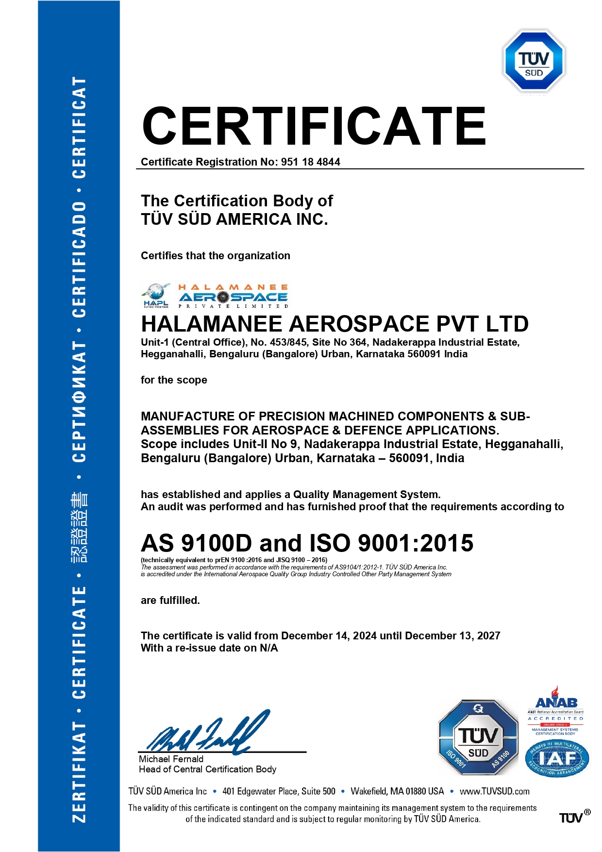 Certified for Global Aerospace Excellence